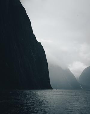 The scale of Milford Sound in New Zealand
